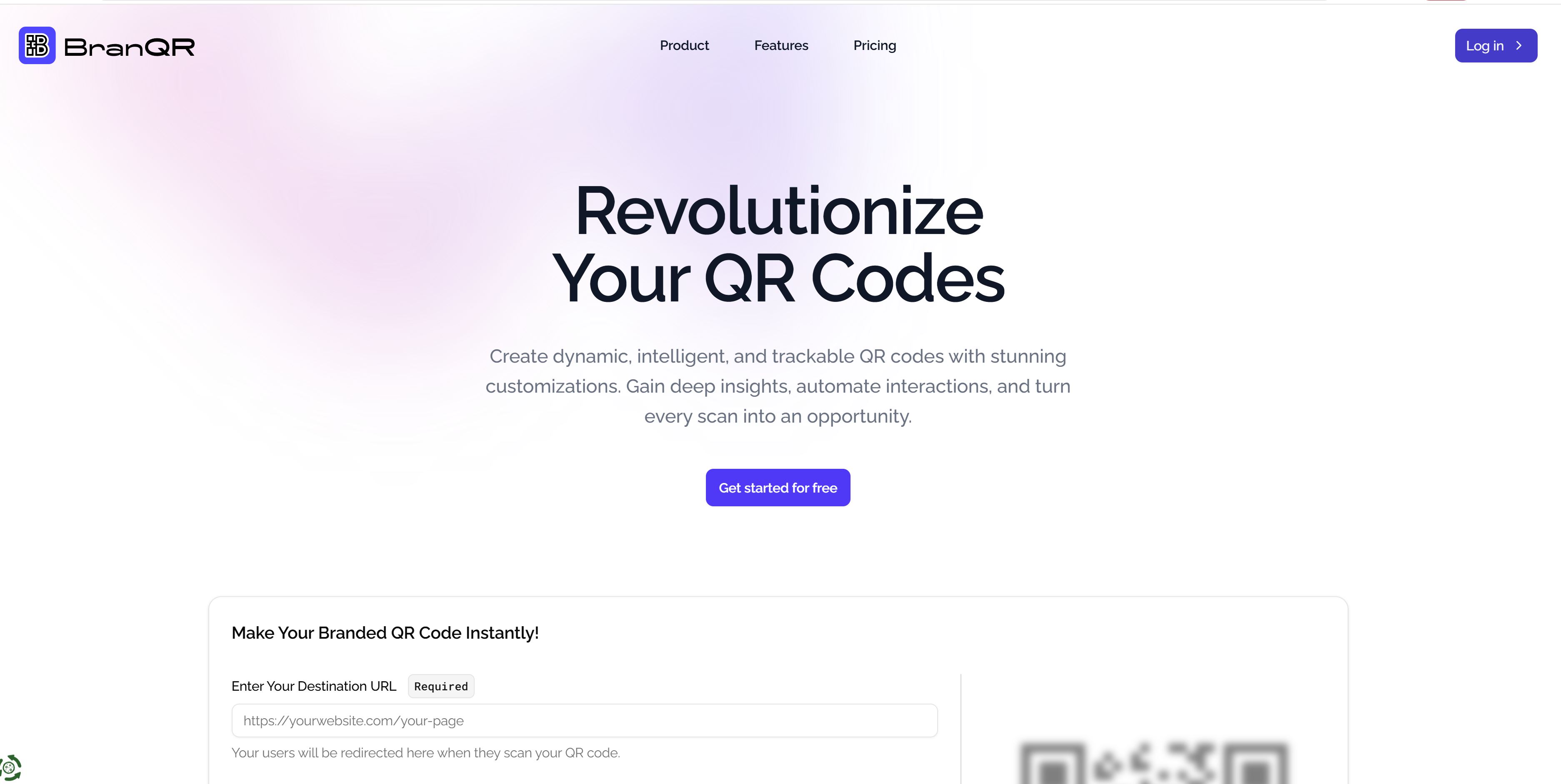 "BranQr is the next-gen tool to create dynamic, branded QR codes in seconds. Easily customize, manage, and track every scan with live analytics, powerful redirects, and smart automation."
