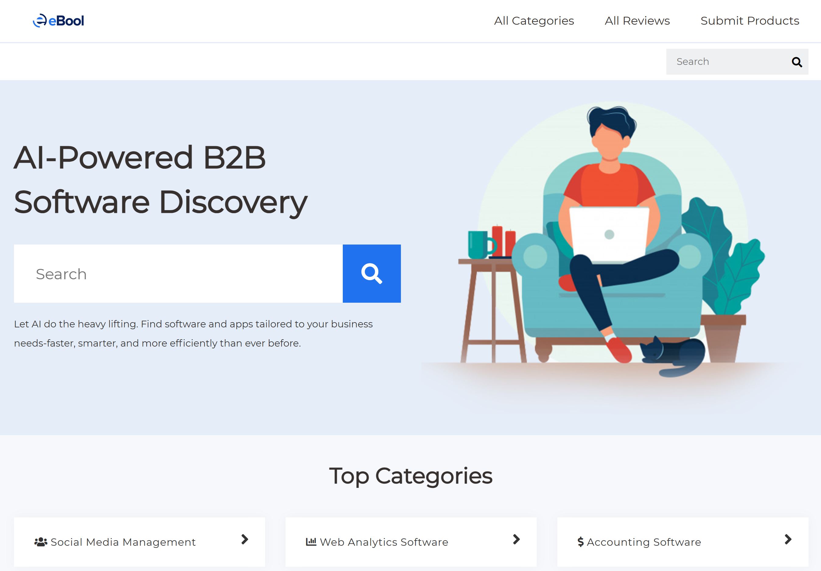 eBool combines artificial intelligence and deep research to create the ultimate software discovery experience. Its smart engine ranks and filters tools objectively, letting you find, compare, and select the best digital solutions for your business—all within minutes.