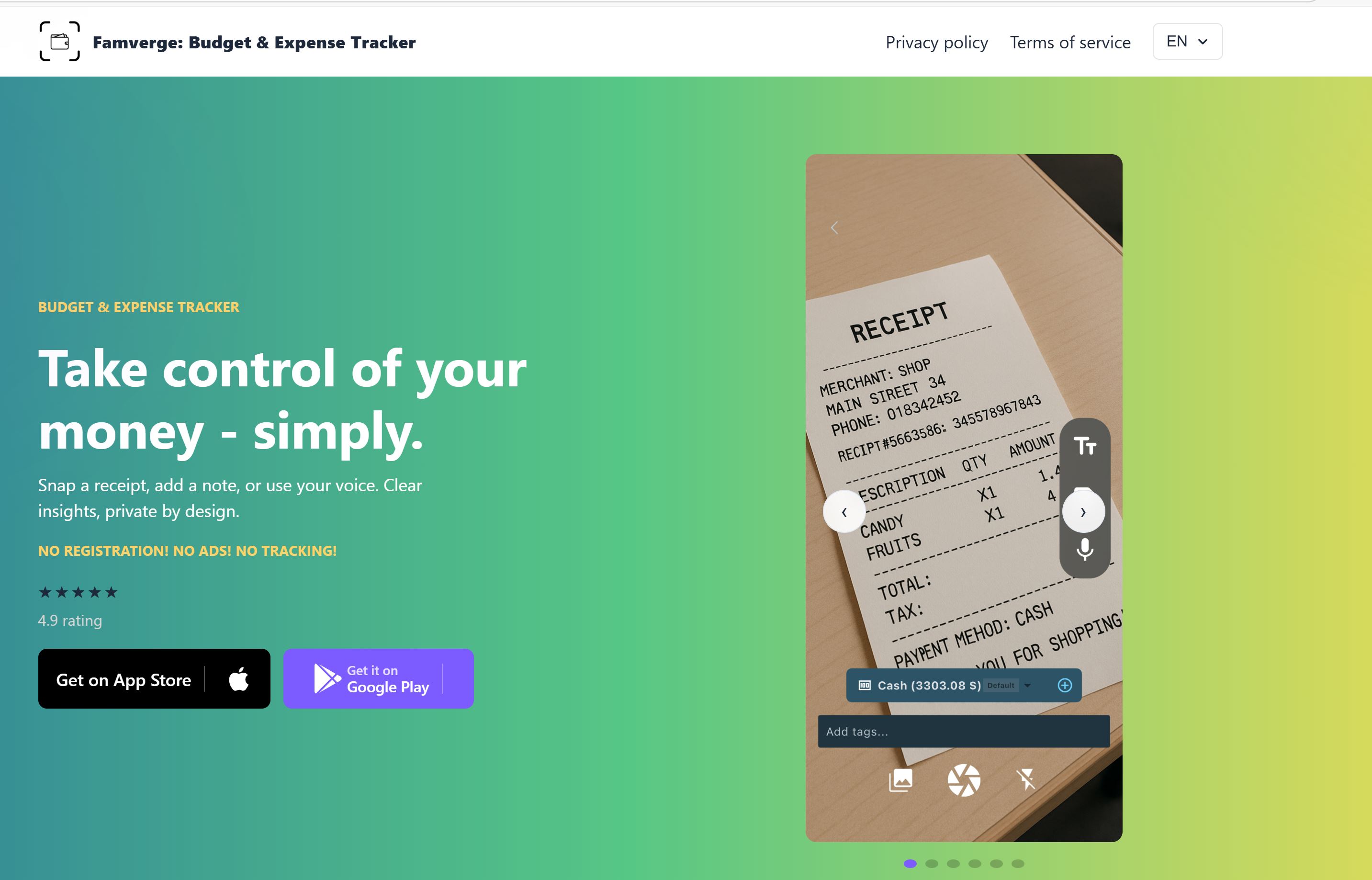Take control of your finances with Famverge - the privacy-focused budget tracker. No Registration! No Ads! No Tracking!