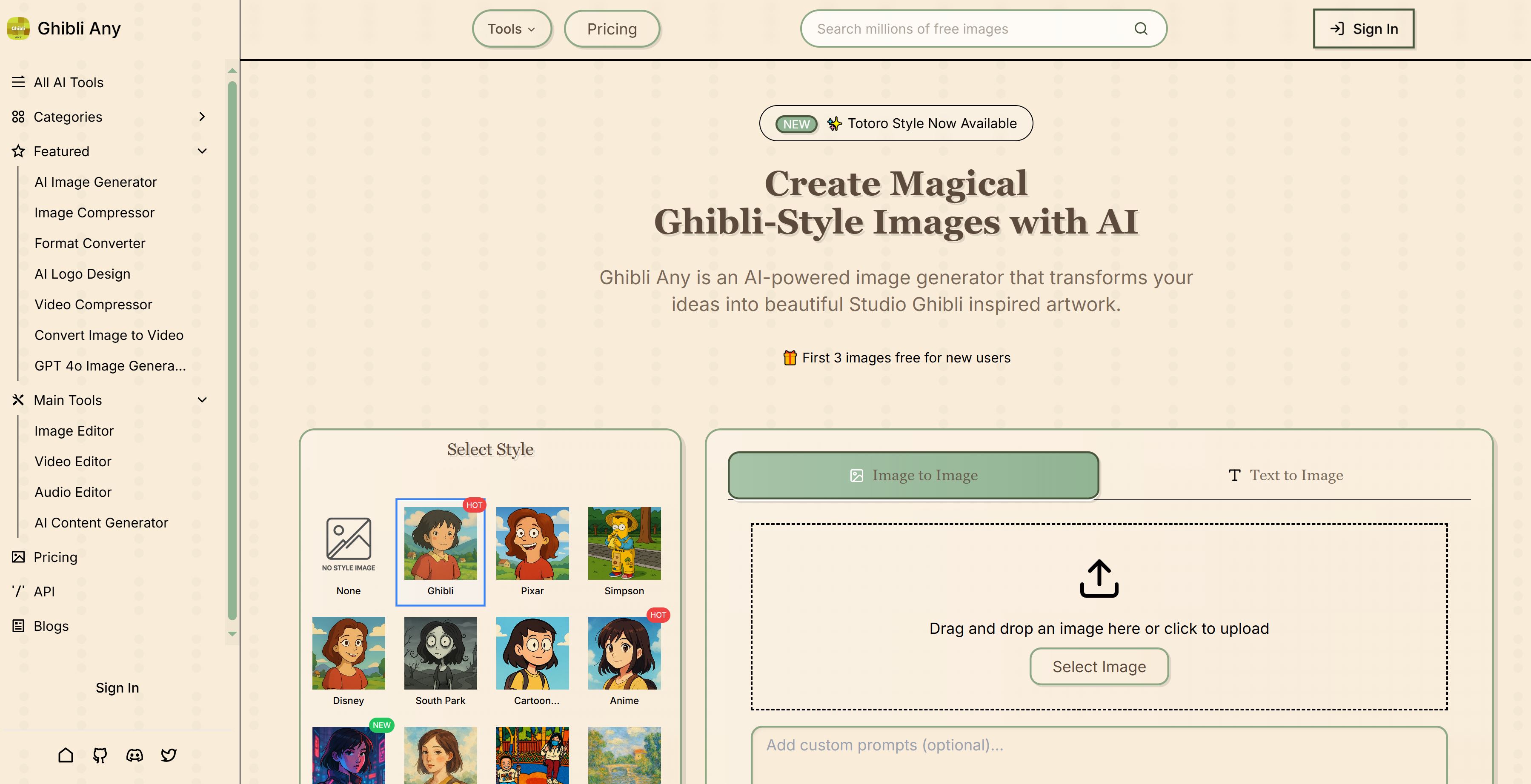 GhibliAny (ghibliany.com) is an AI-powered art generation platform that specializes in creating magical, high-quality images inspired by the iconic styles of Studio Ghibli films.