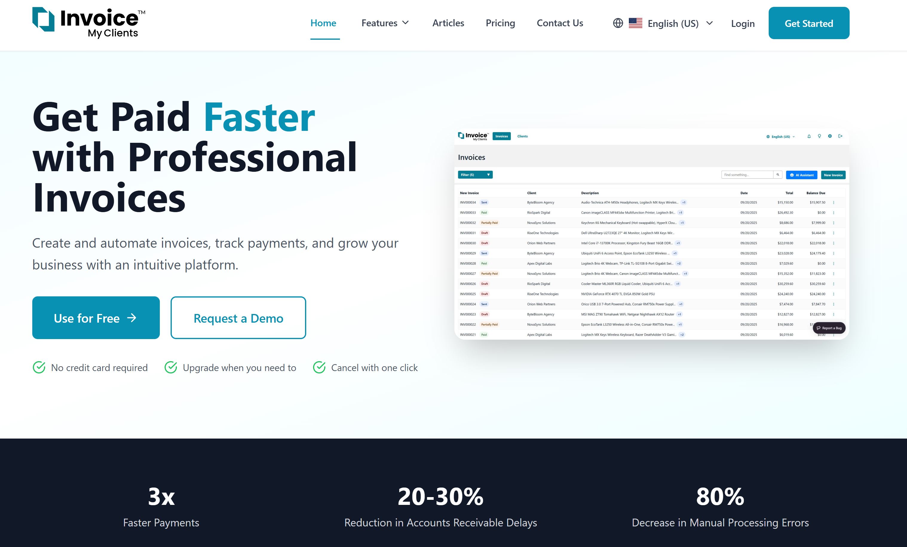Invoice My Clients offers affordable full invoicing/billing workflows to small businesses without the limitations or the complexity of the big players.