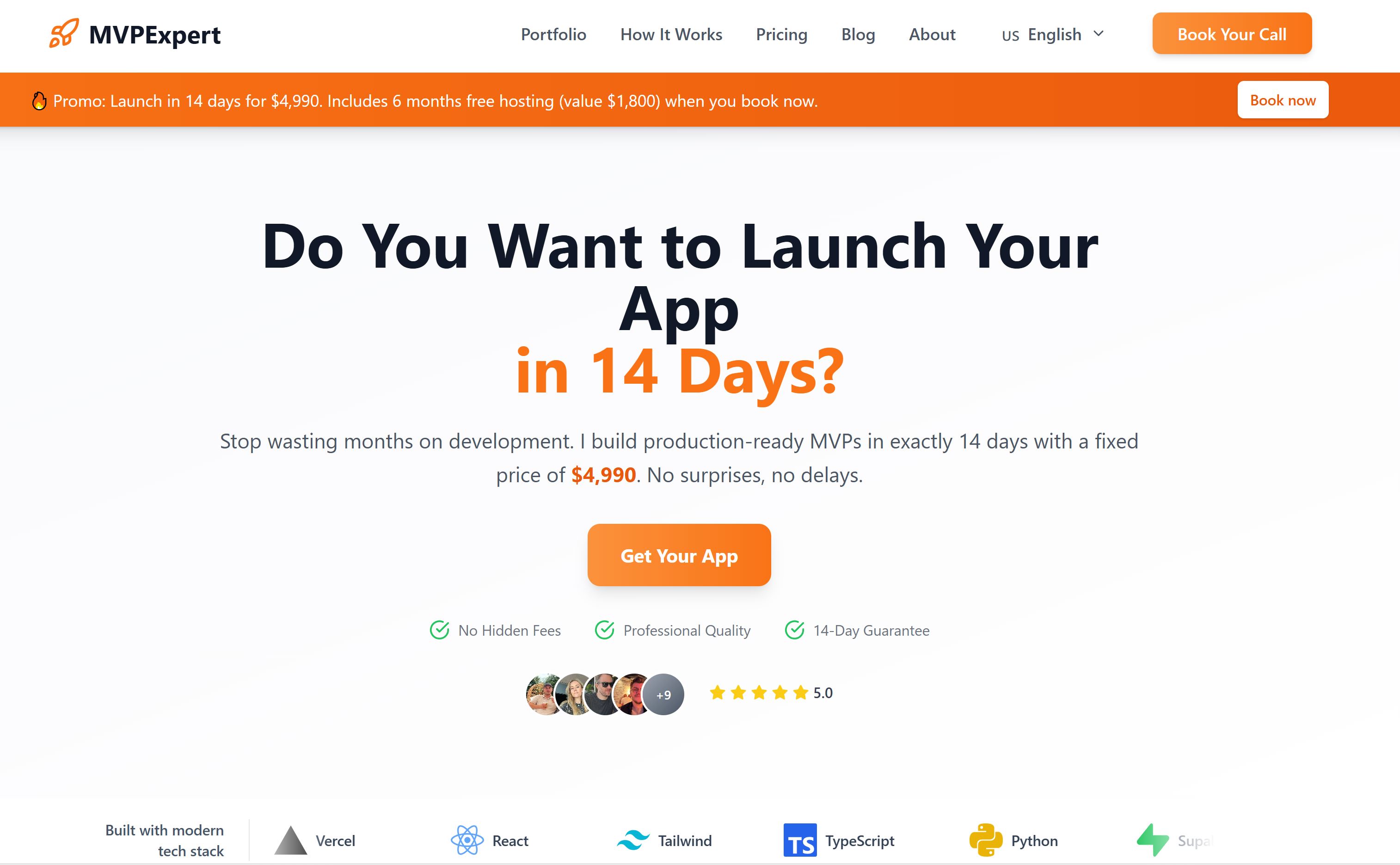 MVPExpert helps SaaS founders and startups launch their Minimum Viable Product in just 14 days. We specialize in fast, fixed-price MVP development using modern, scalable technologies like React, Supabase, Tailwind, Next.js, and Vercel.