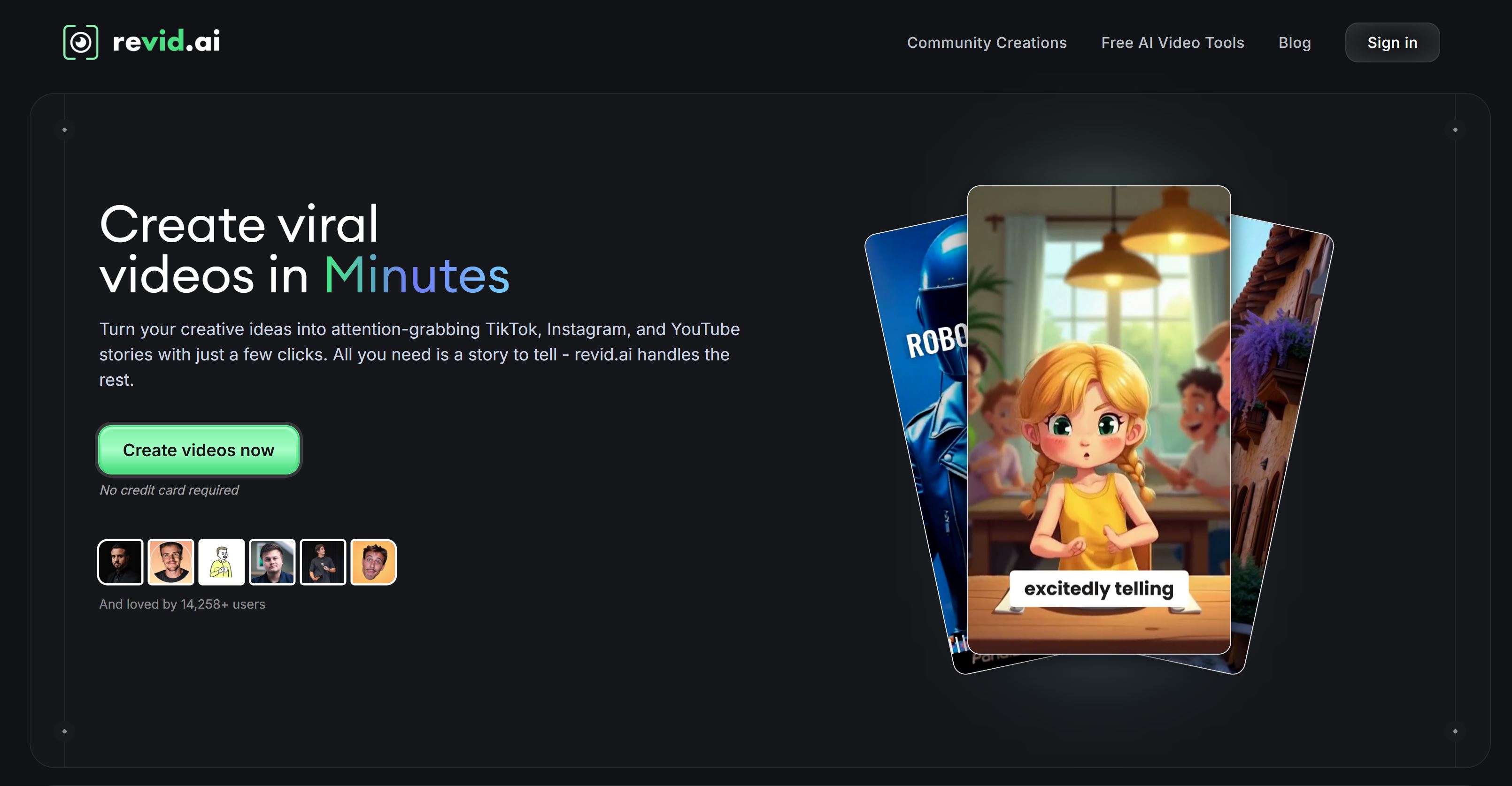 Turn your creative ideas into attention-grabbing TikTok, Instagram, and YouTube stories with just a few clicks. All you need is a story to tell - revid.ai handles the rest.